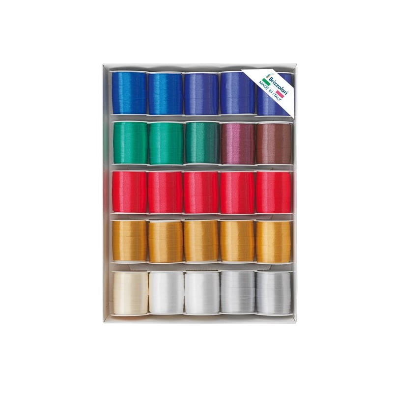 Rocche di nastro liscio 10mmx 10mt. in colori natalizi assortiti.