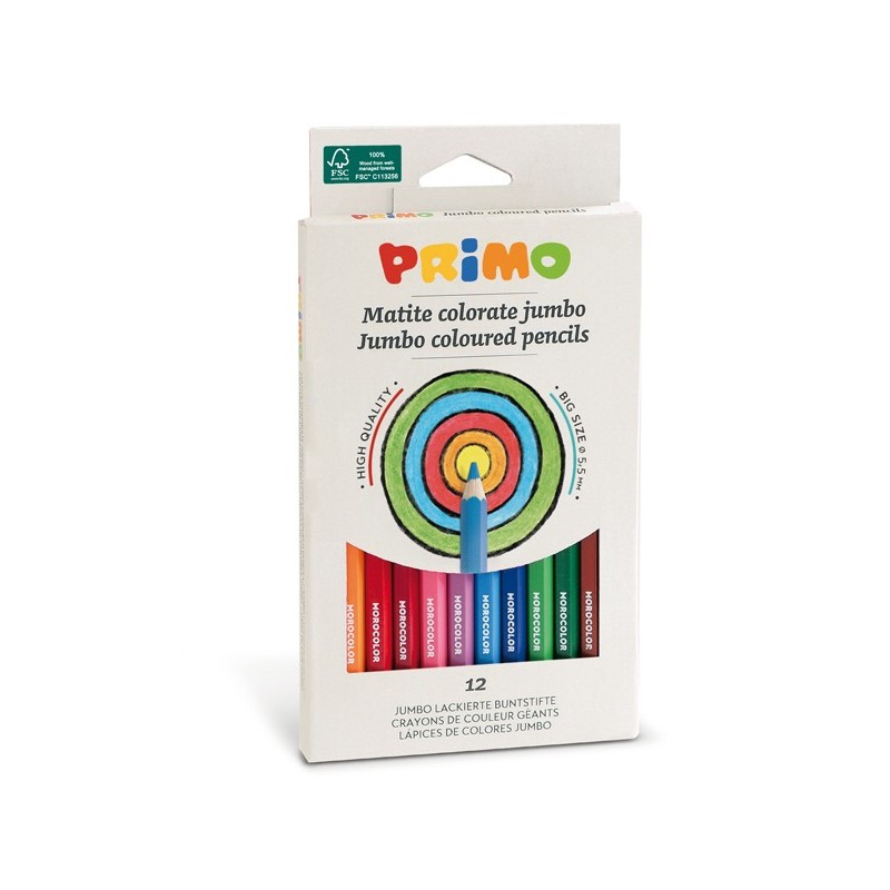 Matite colorate Jumbo - diametro mina 5,5 mm - colori assortiti - Primo - astuccio 12 matite