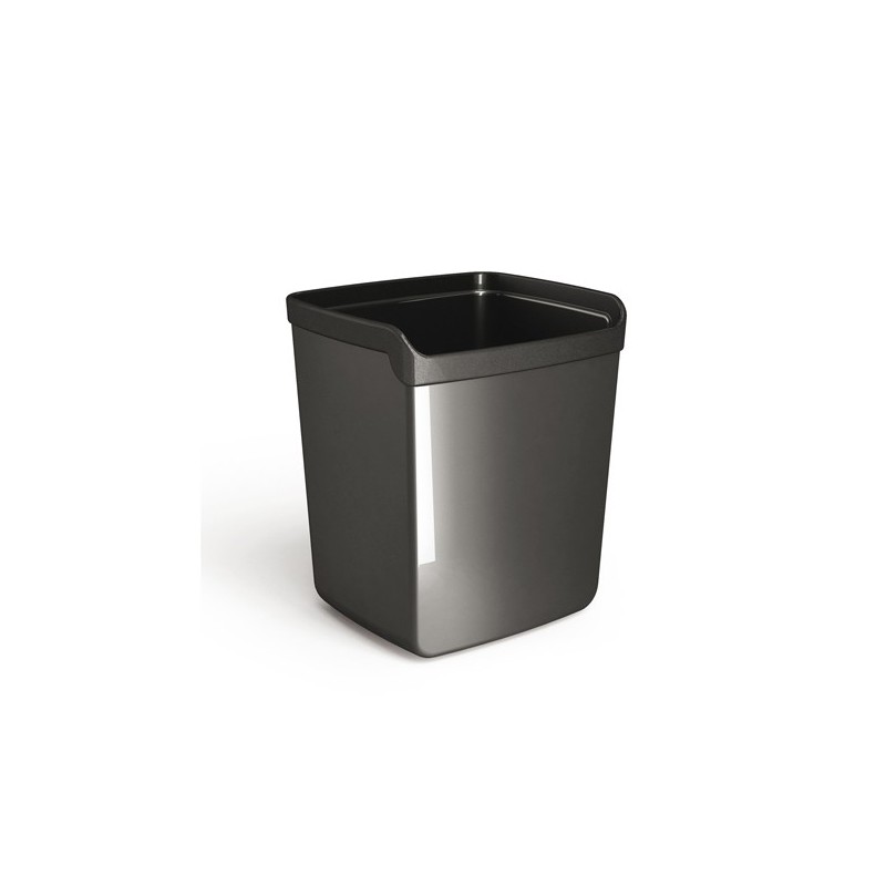 Bicchiere portapenne cilindrico capiente e stabile realizzato in materiale infrangibile con accostamenti di finiture lucide e satinate. Dimensione: 8,7x7,4cm -H10cm.