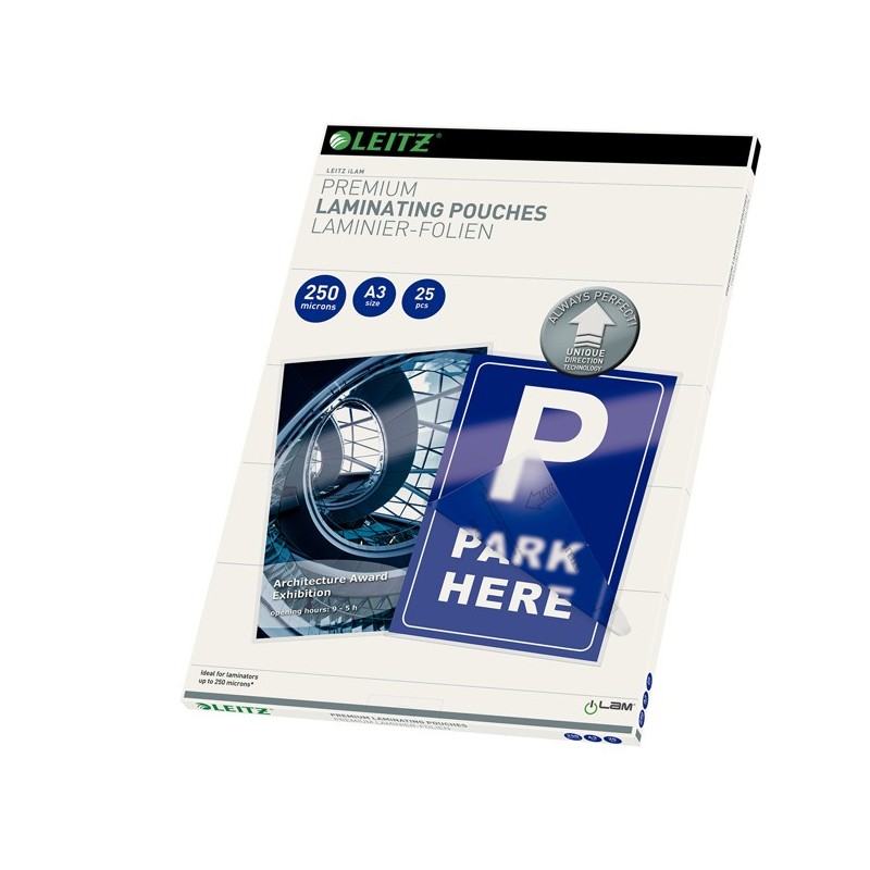 Pouches ILam - A3 - 303x426 mm - 2x250 micron - Leitz - conf. 25 pezzi