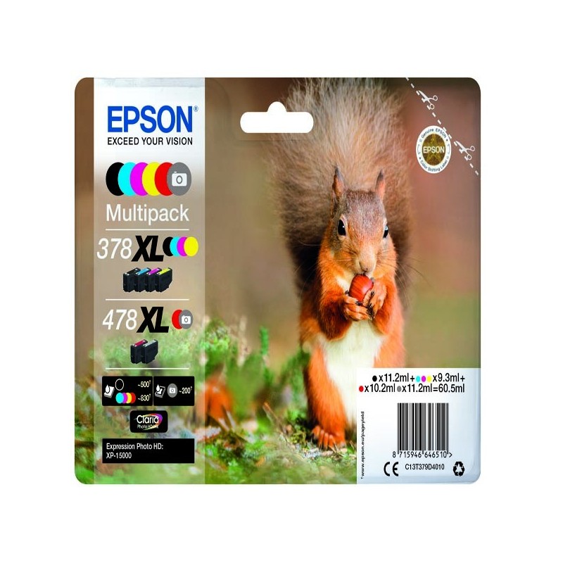 Conf. 6 cartucce ink multipack 1 per colore 378XL + 478XL SCOIATTOLO