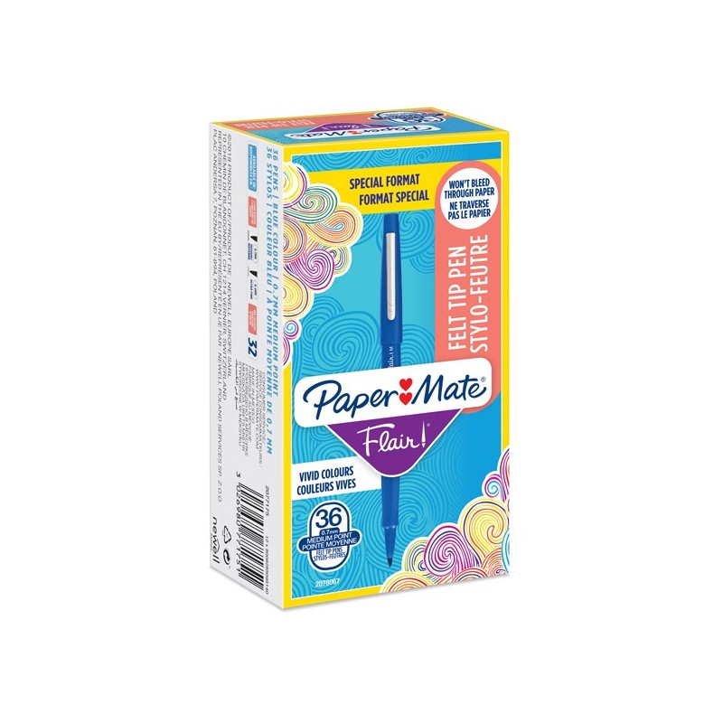 Inchiostro a base d'acqua che non oltrepassa la carta, non macchia e non sbava. Fusto e cappuccio nel colore dell'inchiostro. Punta in fibra per maggior scorrevolezza. Punta 1,1mm. Colore: blu