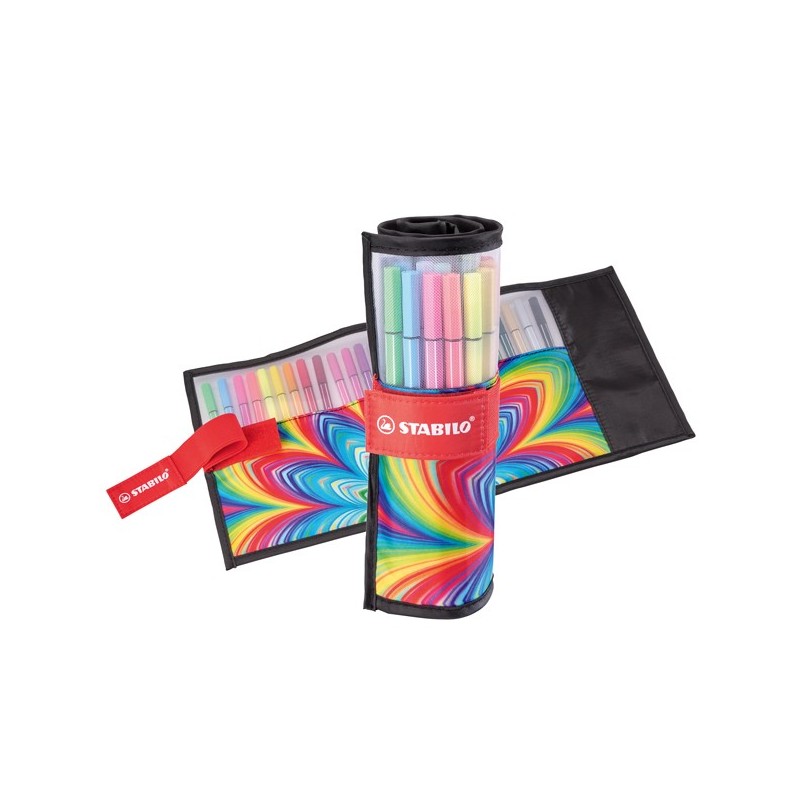 Rotolo in nylon contenente 25 pennarelli in colori assortiti. Scomparto interno con cerniera.
