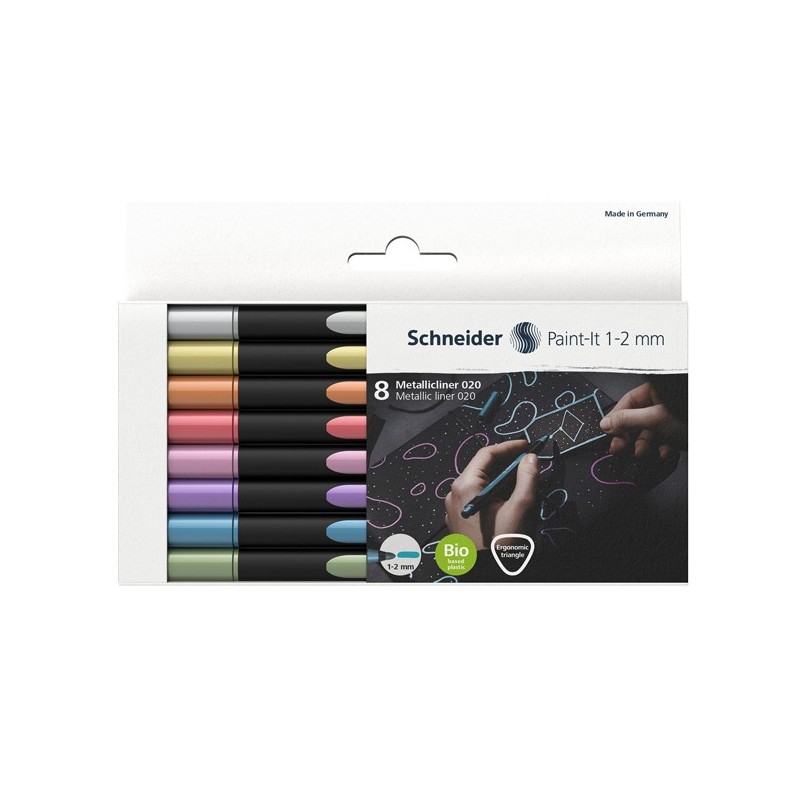 Pennarello Metallic Liner 020 - punta 1-2 mm - colori assortiti - Schneider - conf. 8 pezzi
