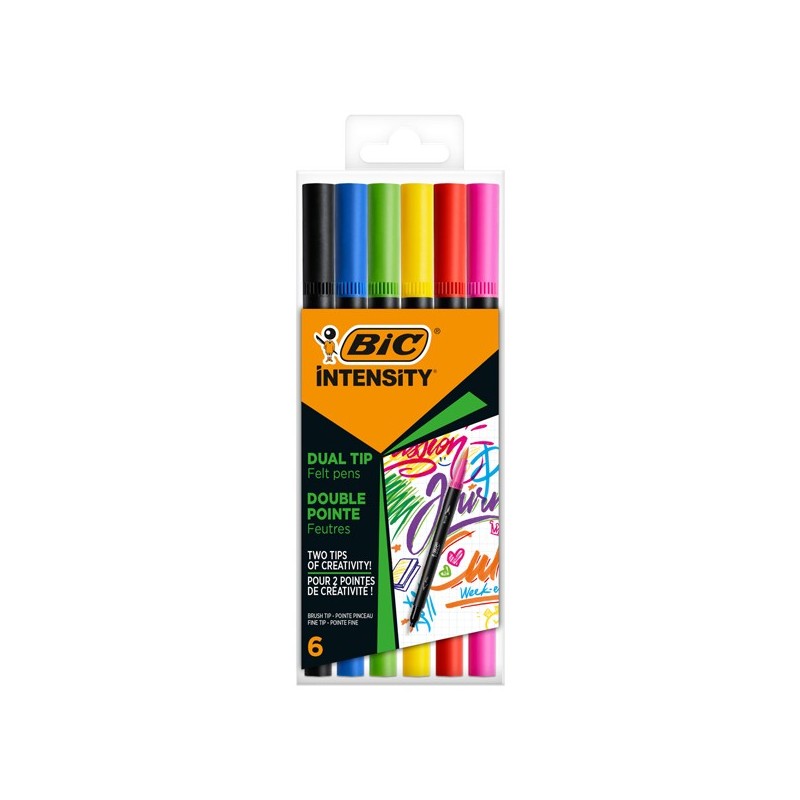 Pennarello Intensity Intense - dual tip brush - colori assortiti - Bic - conf. 6 pezzi