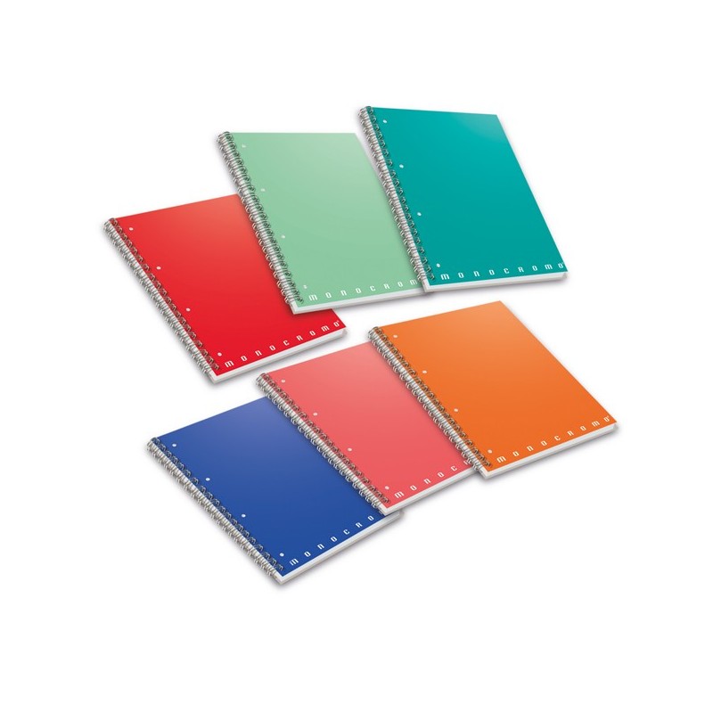 Maxiquaderno spiralato f.to A5 70 fogli. Carta 80gr, con microperforazione.