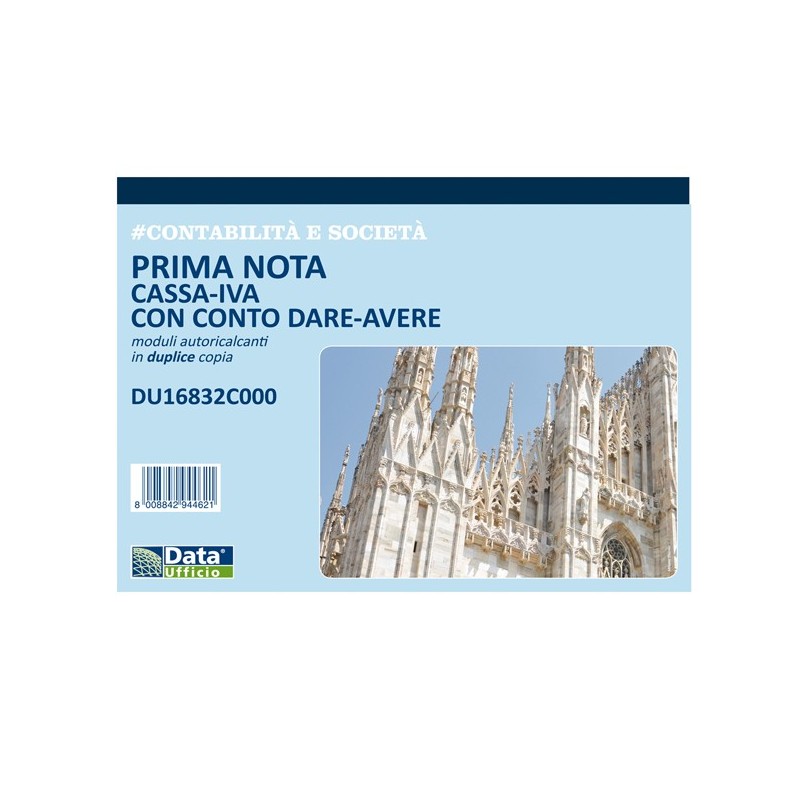 Blocco prima nota cassa/iva c/conto dare-avere, 50/50 copie autoricalcanti. Formato 21,5x29,7cm.
