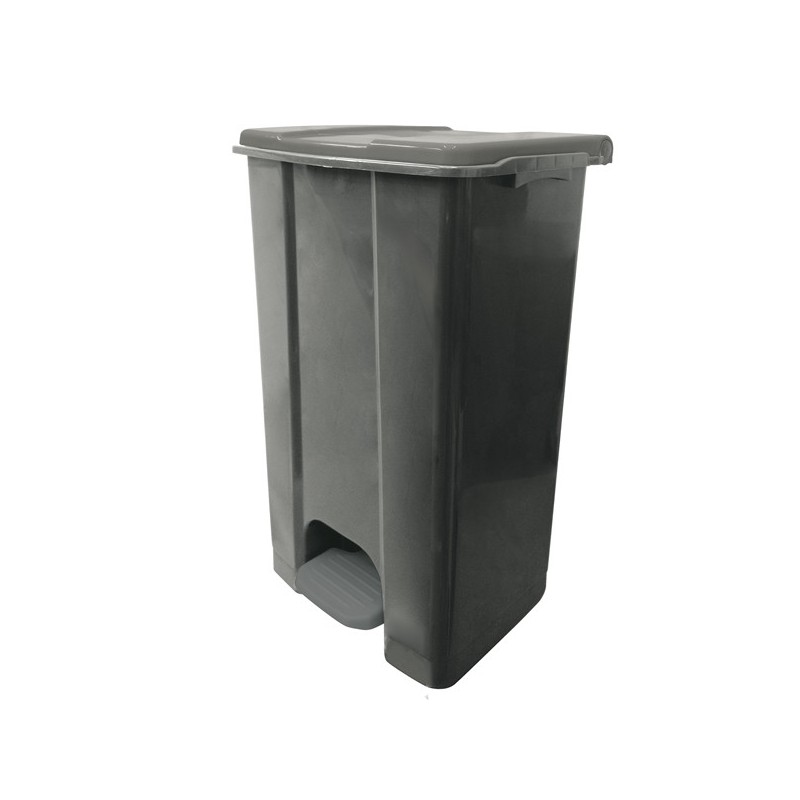 Contenitore in polipropilene plastica riciclata (minimo 70%); sistema d’apertura del coperchio in plastica; coperchi disponibili in vari colori per incentivare la raccolta differenziata; ampio pedale per utilizzo conforme al metodo HACCP; maniglia di trasporto posteriore integrata; ruote in plastica per un facile spostamento. Contenitori risultano particolarmente adeguati sia per uso interno che esterno. Dimensioni: 480 × 390 × 750 mm. Capacità: 80lt.