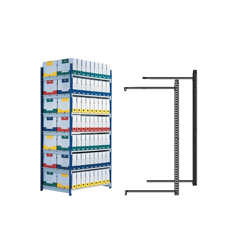 Scaffale regolabile ad alta capacità con sistema di montaggio a incastro, senza alcun attrezzo. Scaffali in acciaio 12,5/10 e verniciatura epossidica. Portata massima 180 Kg per ripiano. Altezza 2 metri, larghezza 1 metro, profondita 68cm. Il modulo base viene fornito con 5 ripiani (costituiti da staffe metalliche longitudinali). La scaffalatura puo' essere facilmente ampliata aggiungendo allo scaffale uno o piu' moduli aggiunta.
