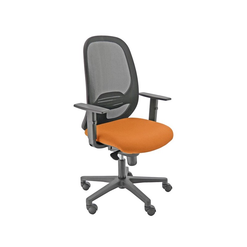 Seduta operativa girevole con elevazione a gas, meccanismo synchro con 4 blocchi antishock, meccanismo a contatto permanente e supporto lombare regolabile. Traslatore sedile. Compelta di braccioli regolabili. Rivestimento seduta in tessuto "ECO-Eco" 100% polipropilene. Alt.tot.: 102-113; Prof.tot.: 68; Alt. schienale: 60cm; Largh. schienale: 48cm; Larg.seduta: 48cm (64cm c/bracc); Prof.sedile: 46cm; Altezza seduta: 42-54cm.