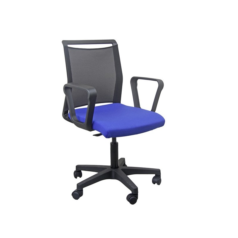 Seduta operativa girevole con schienale in rete nera e seduta rivestita in polipropilene. Base in nylon, elevazione a gas. Braccioli inclusi. Ideale per smartworking. Alt.tot.: 87-99; Prof.tot.: 60; Larg.seduta: 46cm; Altezza seduta: 41-53cm