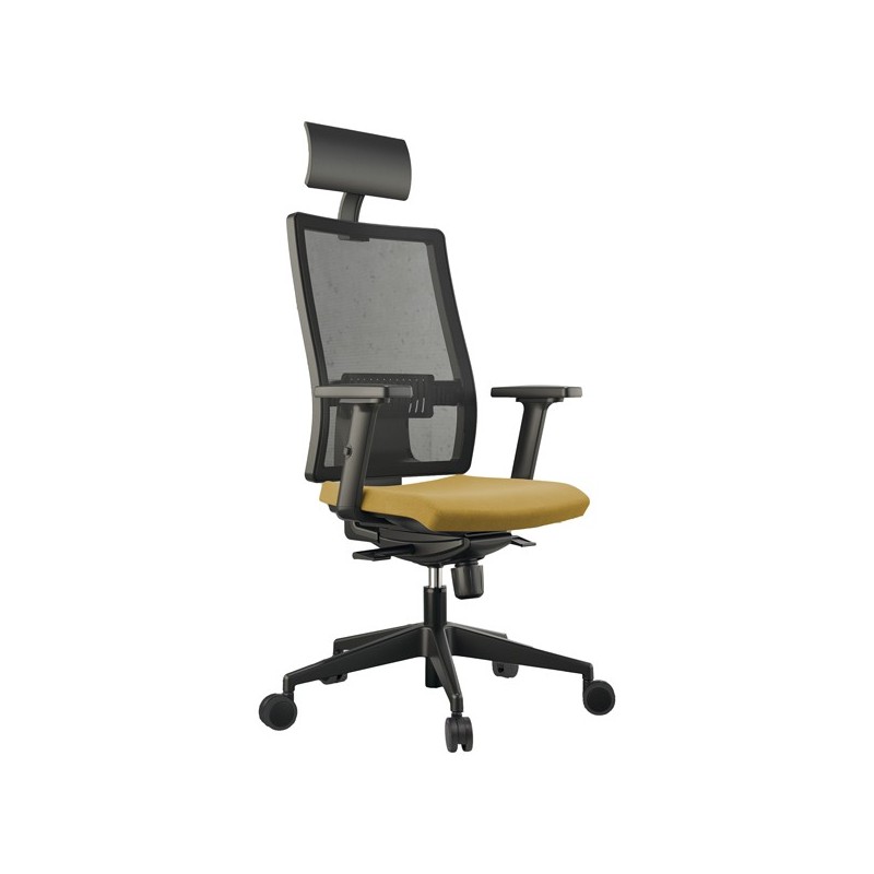Seduta operativa girevole - elevazione a gas - meccanismo Syncro - 4 blocchi anti shock - meccanismo a contatto permanente - regolazione schienale up-down. Rivestimento seduta in tessuto "FASHION - Salò" 100% poliestere e certificazione di infiammabiltà 1IM UNI 9175 EN 1021. Completa di braccioli regolabili e poggiatesta. Alt.tot.: 122-133cm; Prof.tot.: 68cm; Alt.schienale: 61cm; Larg.schienale: 45cm; Larg.seduta: 50cm; Prof.Sedile: 46cm; Alt. sedile: 42-54cm.