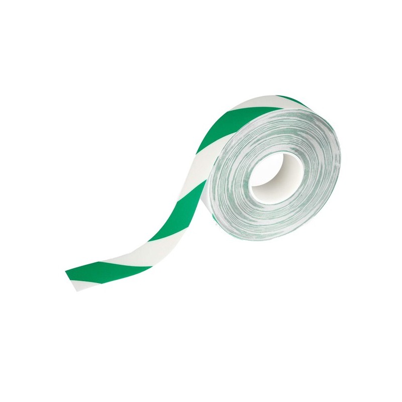 Nastro adesivo extra-forte bicolore per segnaletica orizzontale in ambienti interni, ideale per segnalare, in modo resistente e duraturo, passerelle e vialetti all'interno di magazzini e aree di produzione. Resistenza allo scivolamento R9 e conforme alla normativa DIN 51130. Dimensioni (L x L): 50 mm x 30 m, spessore: 1,2 mm.
