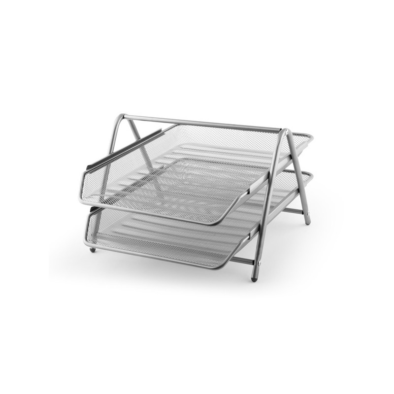 Set scrivania in rete composto da portacorrispondenza 2 scomparti colore argento. Formato 35,5x30x21cm