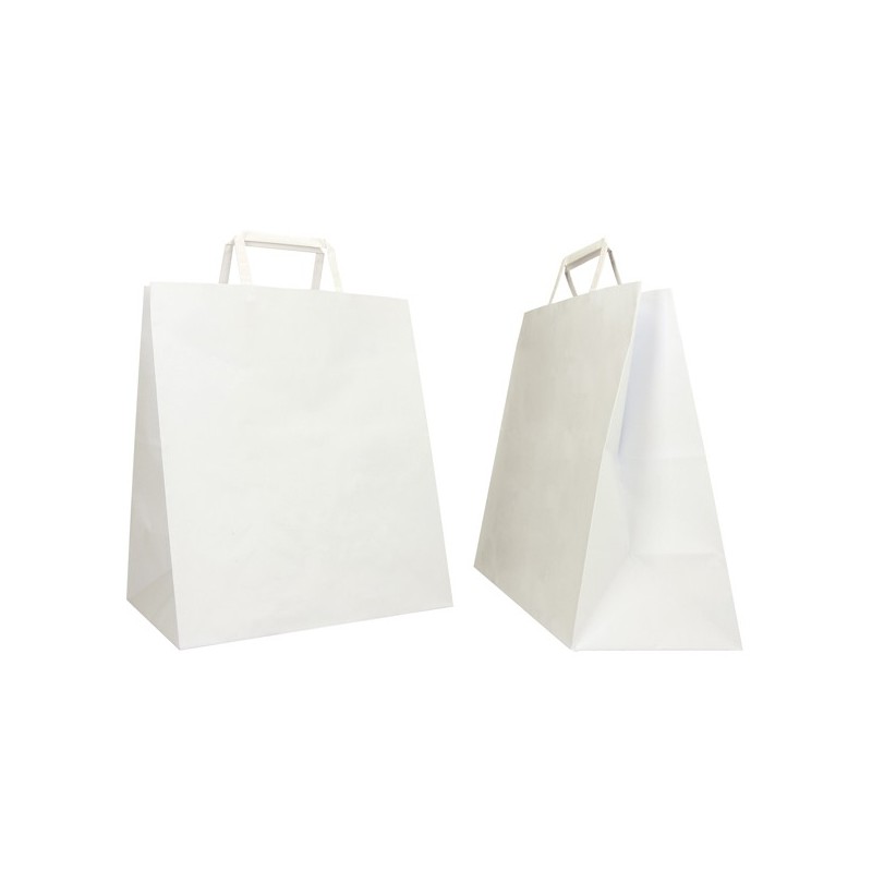 Shopper ideali per il trasporto di vassoi e contenitori alimentari realizzate con soffietti molto larghi dedicati a questo utilizzo. Dimensione 28x17x32cm. Colore bianco.