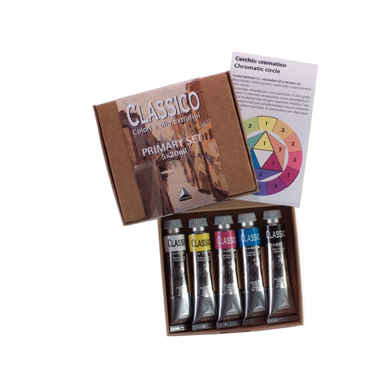 Colori a olio extrafini Primary Set comprende 5 tubetti da 20ml (colori primari, nero e bianco).